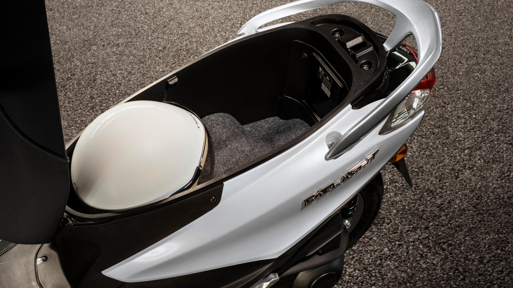 A D'elight conta com muito espaço de arrumação sob o assento, sendo uma das únicas scooters na sua classe a conseguir acomodar um capacete integral. Quando está em movimento, é o local perfeito para colocar os seus objetos pessoais e é ideal para quando precisa de dar fazer mais umas compras na mercearia.