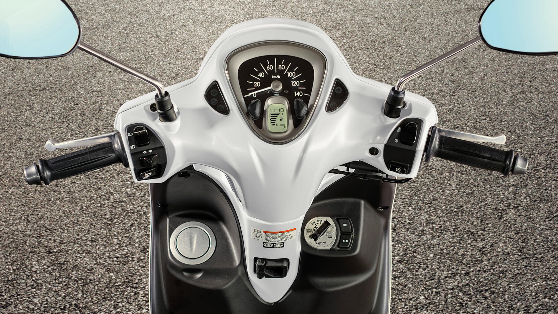 Com seu design elegante, a D'elight fica ótima onde quer que vá. Com uma carenagem dianteira leve e um farol redondo clássico - bem como uma lâmpada de posição LED e piscas dianteiros integrados - esta leve scooter urbana é uma das mais cool da categoria de 125 cc. Ela conta também com um display LCD, um conta KM's analógico e luzes de aviso e informação.