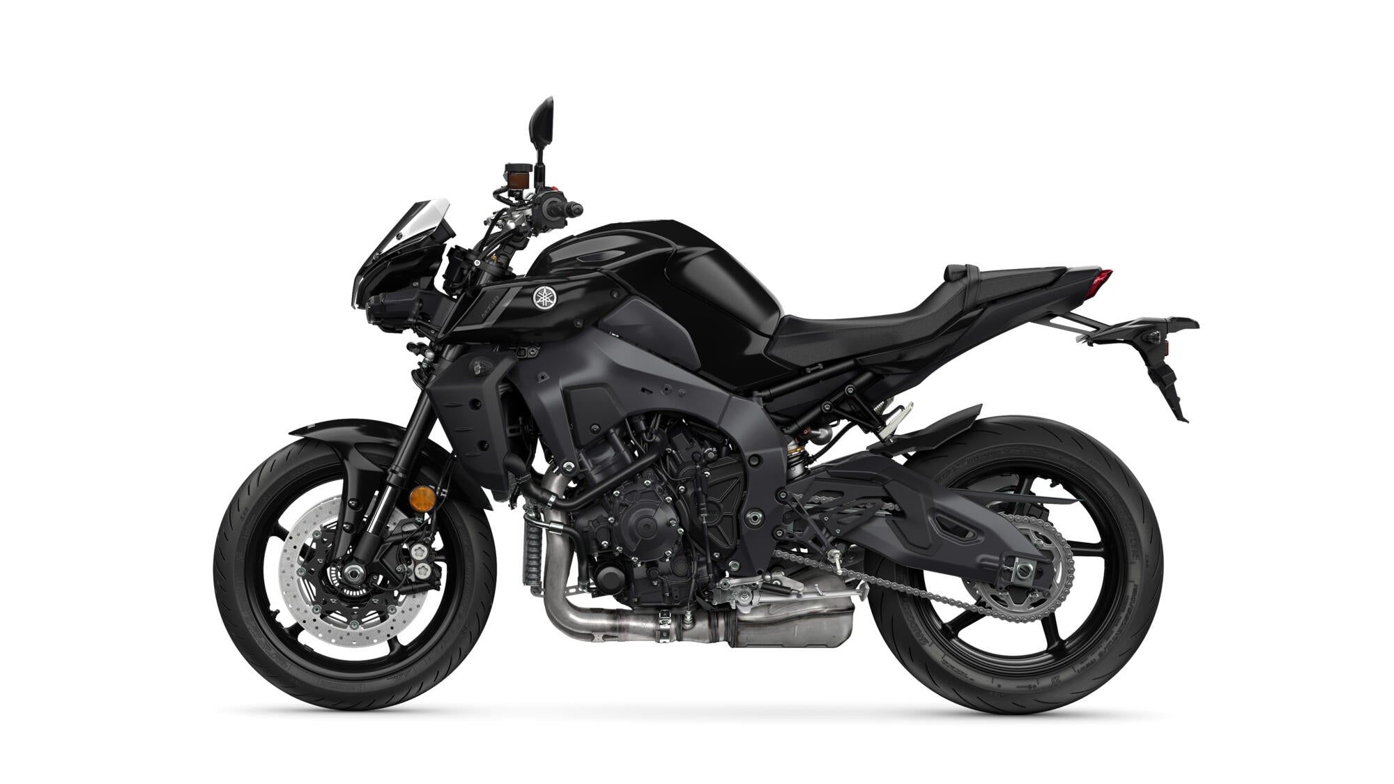 A rainha da gama MT exige respeito. A primeira coisa a captar a sua atenção é o conjunto de faróis compacto e o design agressivo do depósito, que destacam a incrível beleza mecânica da MT-10. E assim que ouvir o rugido profundo do motor CP4 de 998 cc que sai das admissões de ar, saberá que esta é a moto certa para si.