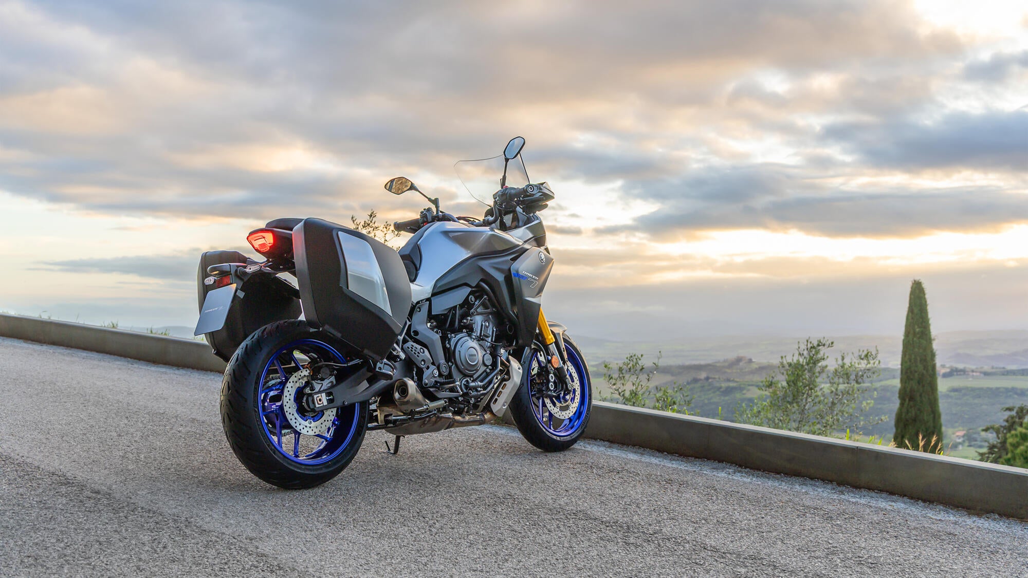 A TRACER 7 GT combina um estilo dinâmico com um design funcional e compacto para criar a sensação de movimento, mesmo quando parada. Os novos faróis LED com expressivas luzes de presença, que vão aumentando de intensidade gradualmente quando se ligam, realçam a dianteira futurista da GT, enquanto o novo ecrã ajustável, mais alto 90 mm, proporciona uma proteção reforçada contra o vento para um conforto ainda maior em turismo desportivo.