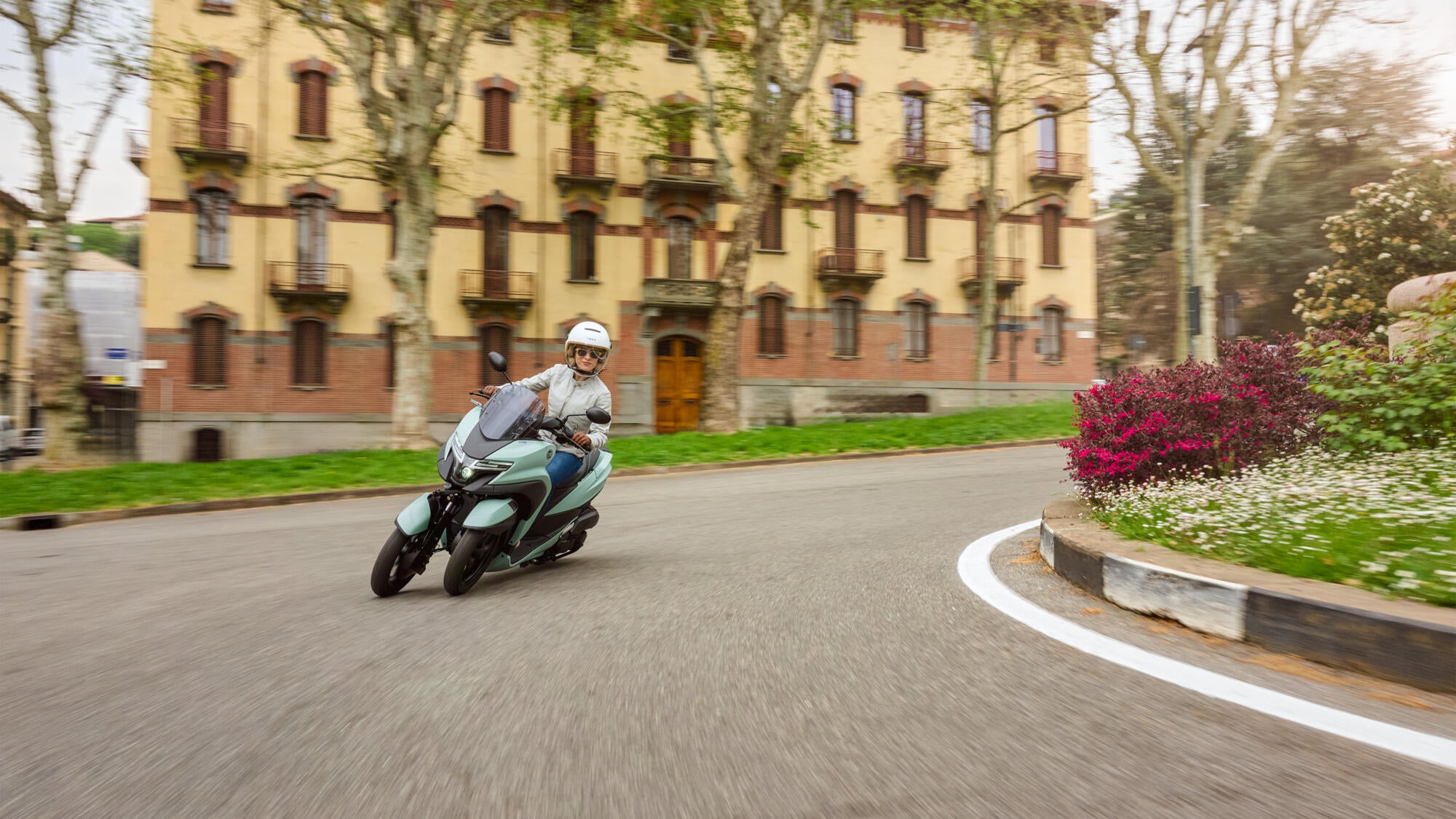 Andar nesta elegante scooter de 3 rodas é tão simples e intuitivo. Basta rodar o acelerador e sentirá o motor EURO5+ de 125cc, totalmente automático, a acelerar suave e silenciosamente. E o design do chassis Leaning Multi Wheel da Yamaha proporciona maior confiança em curva, mesmo em pisos molhados e irregulares.